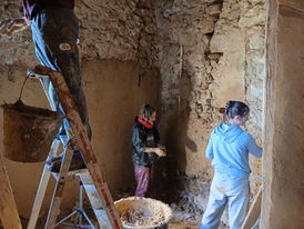 A ce jour deux chantiers écoles ont déjà eu lieu sous l'oeil expert de Nicolas Rosselo, artisan d'art et passionné de patrimoine.
